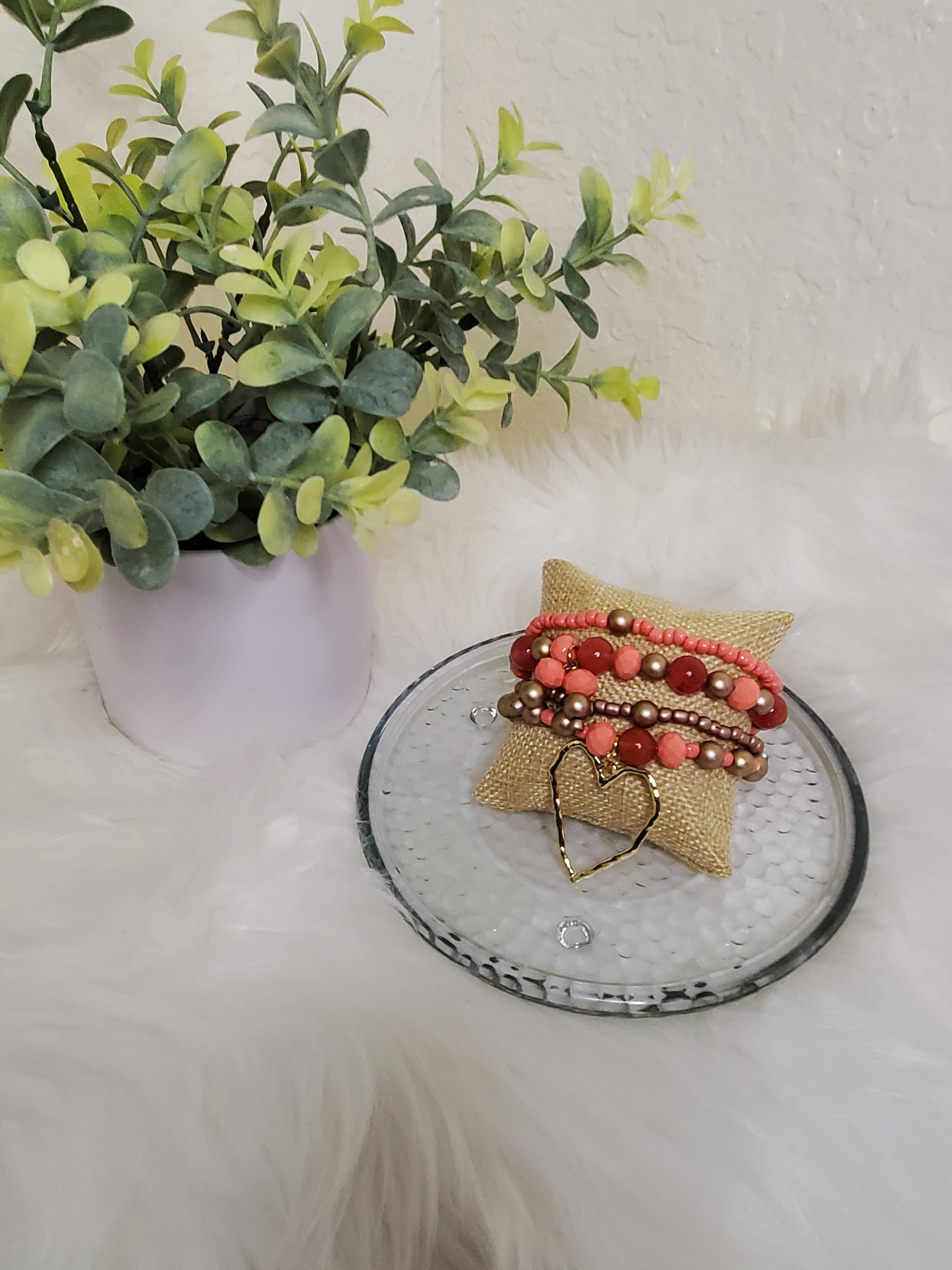 Material: ACRYLIC BEADS, 18k GOLD PLATED HEART AND BEADS.