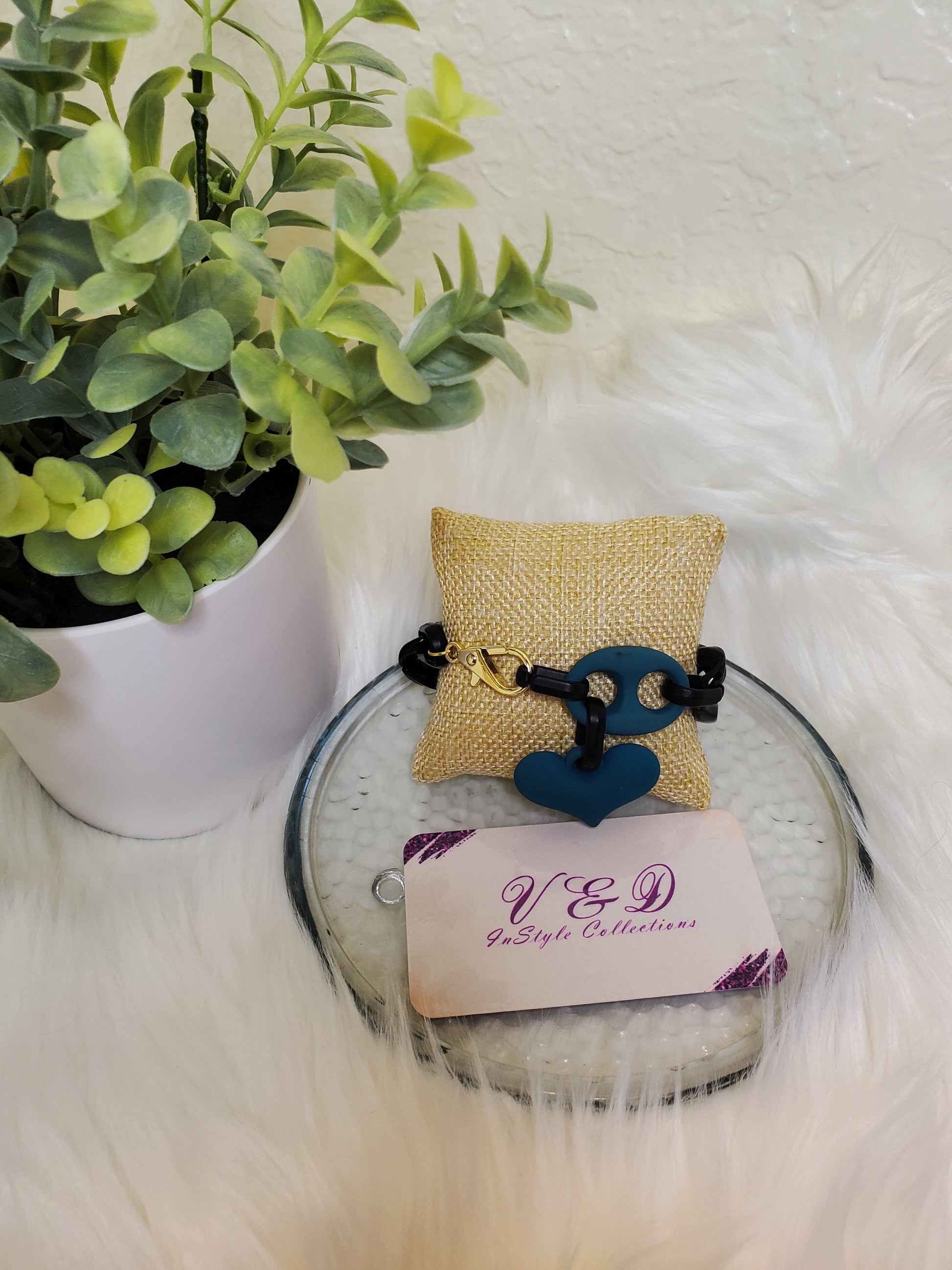 material; ACRYLIC LINKS BRACELET-AND HEART-18K GOLD PLATED CONNECTOR