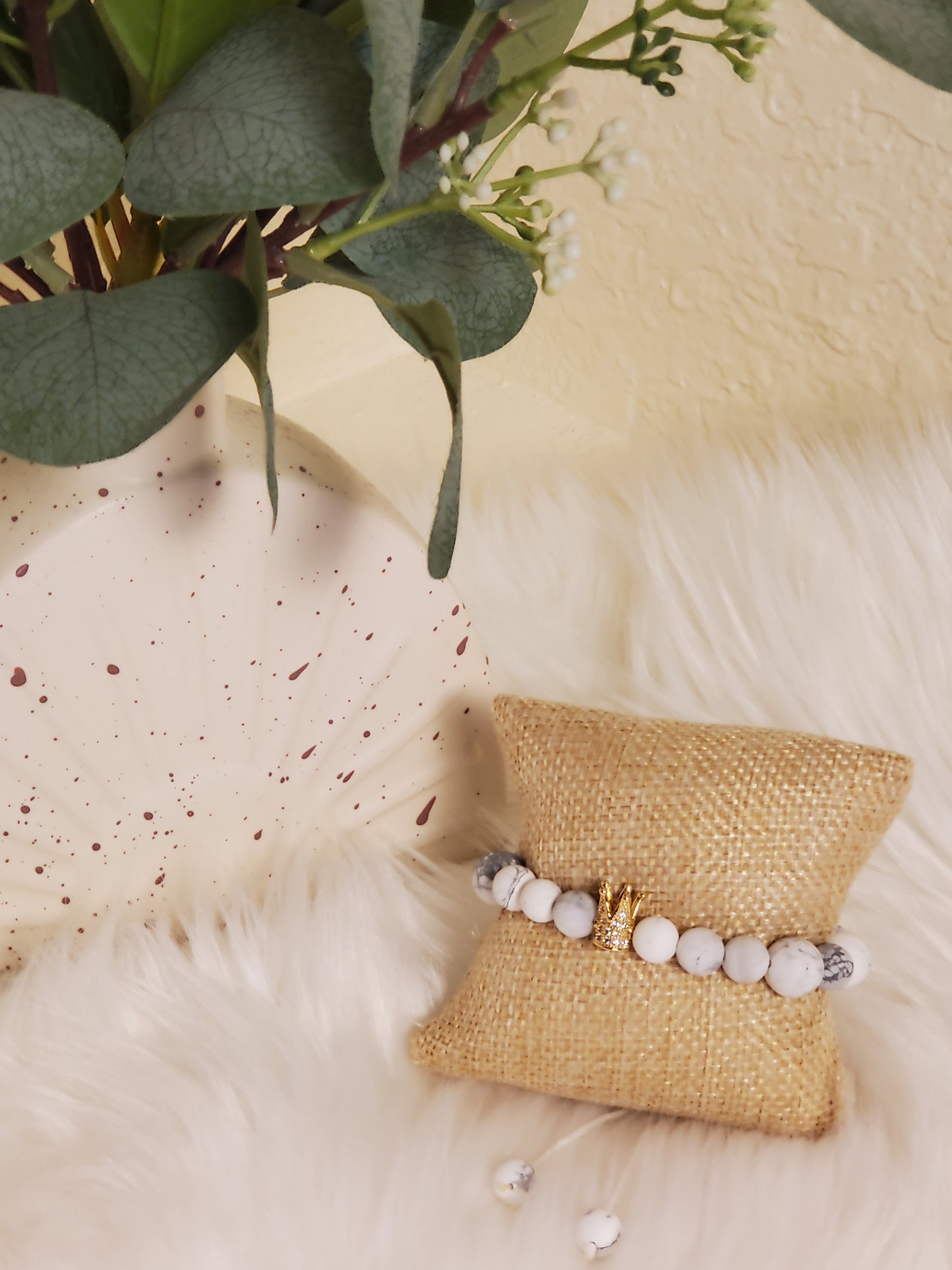 Material: gold plated 18k crown, stones beads and polyester cord