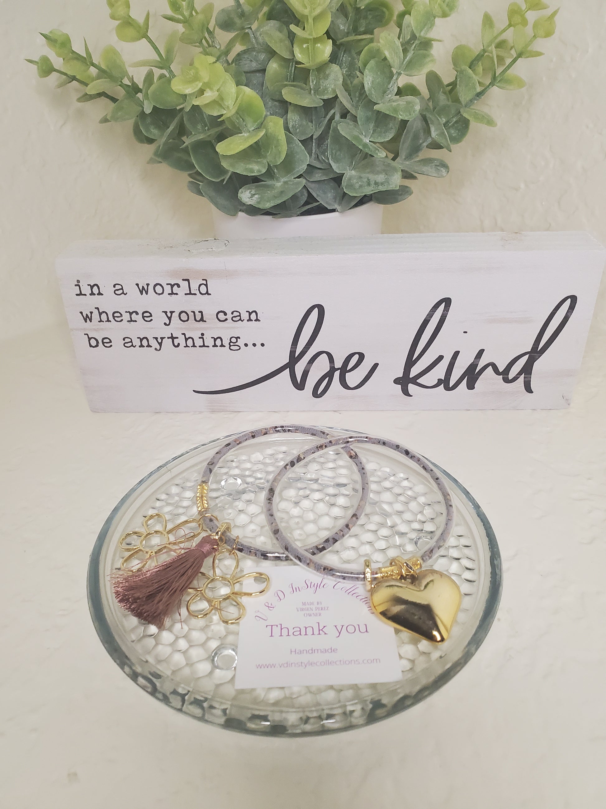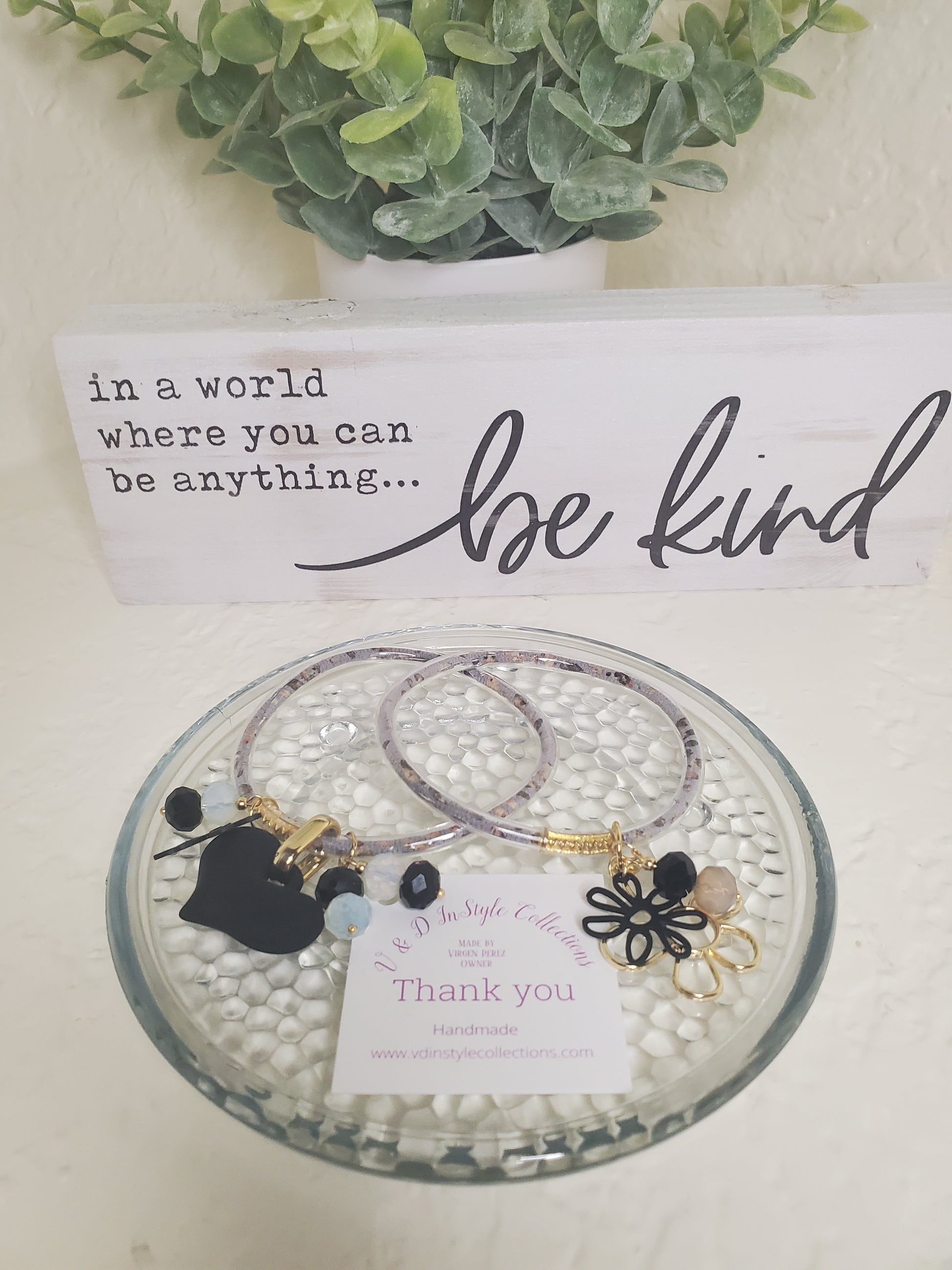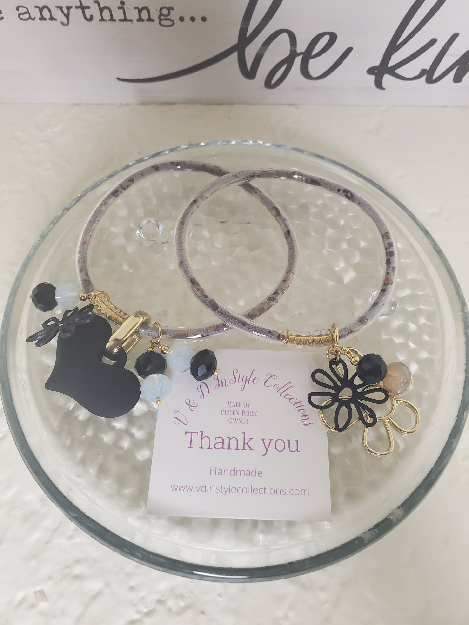 material: acrylic beads-gold plated charms-silicone bracelets.