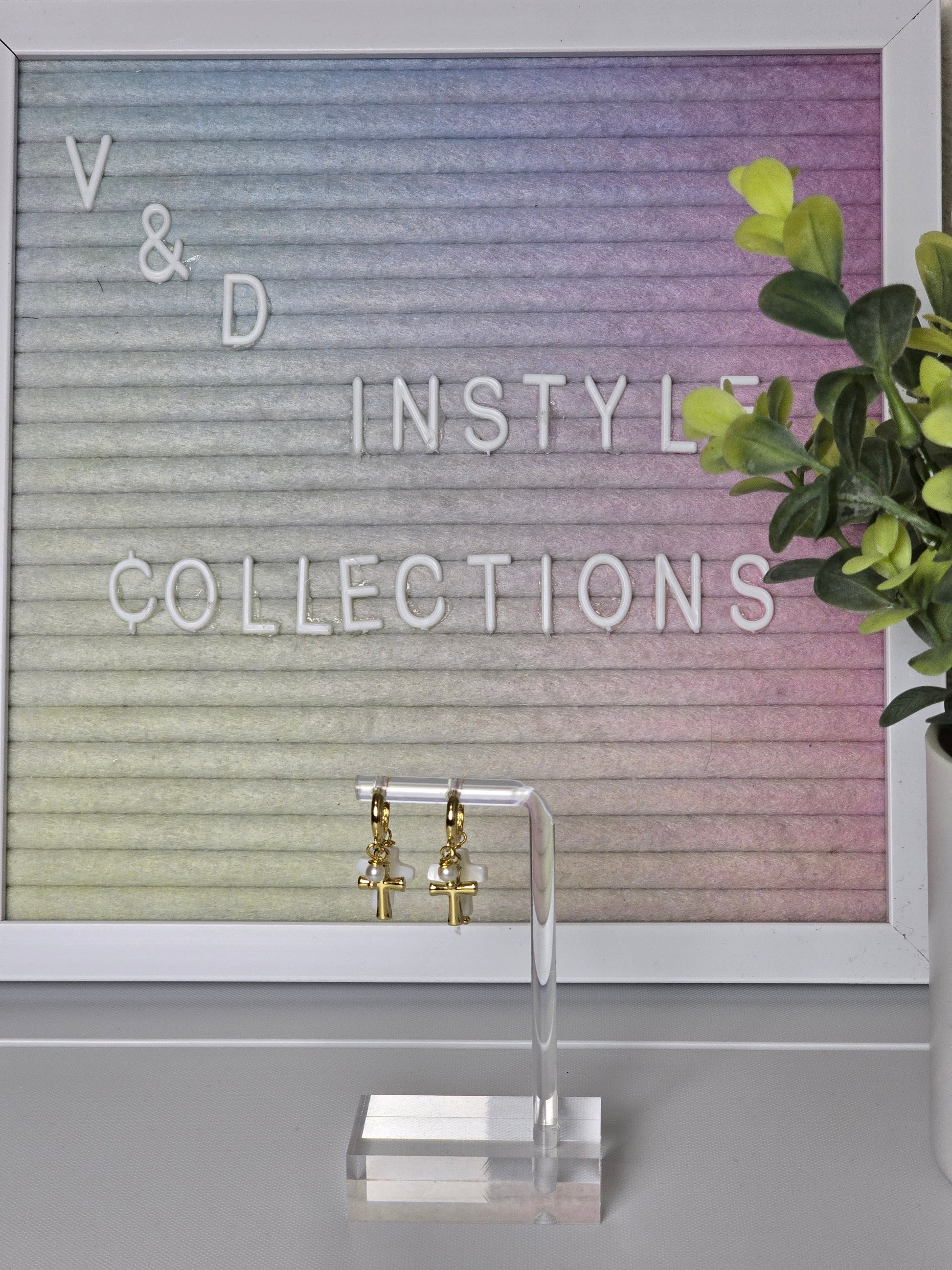 Material: acrylic and gold plated.