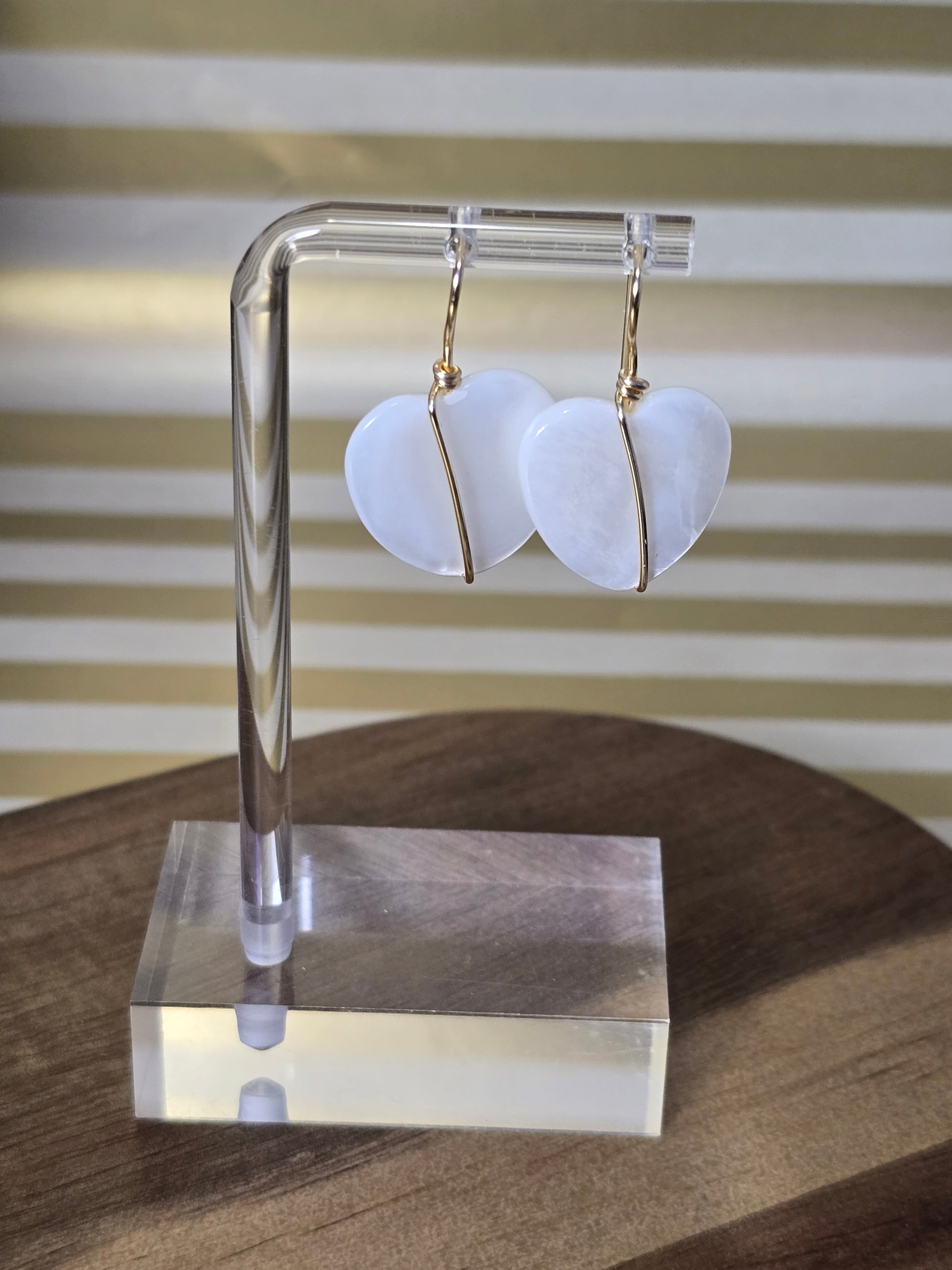 Material: heart pearl shell beads and gold plated wire.