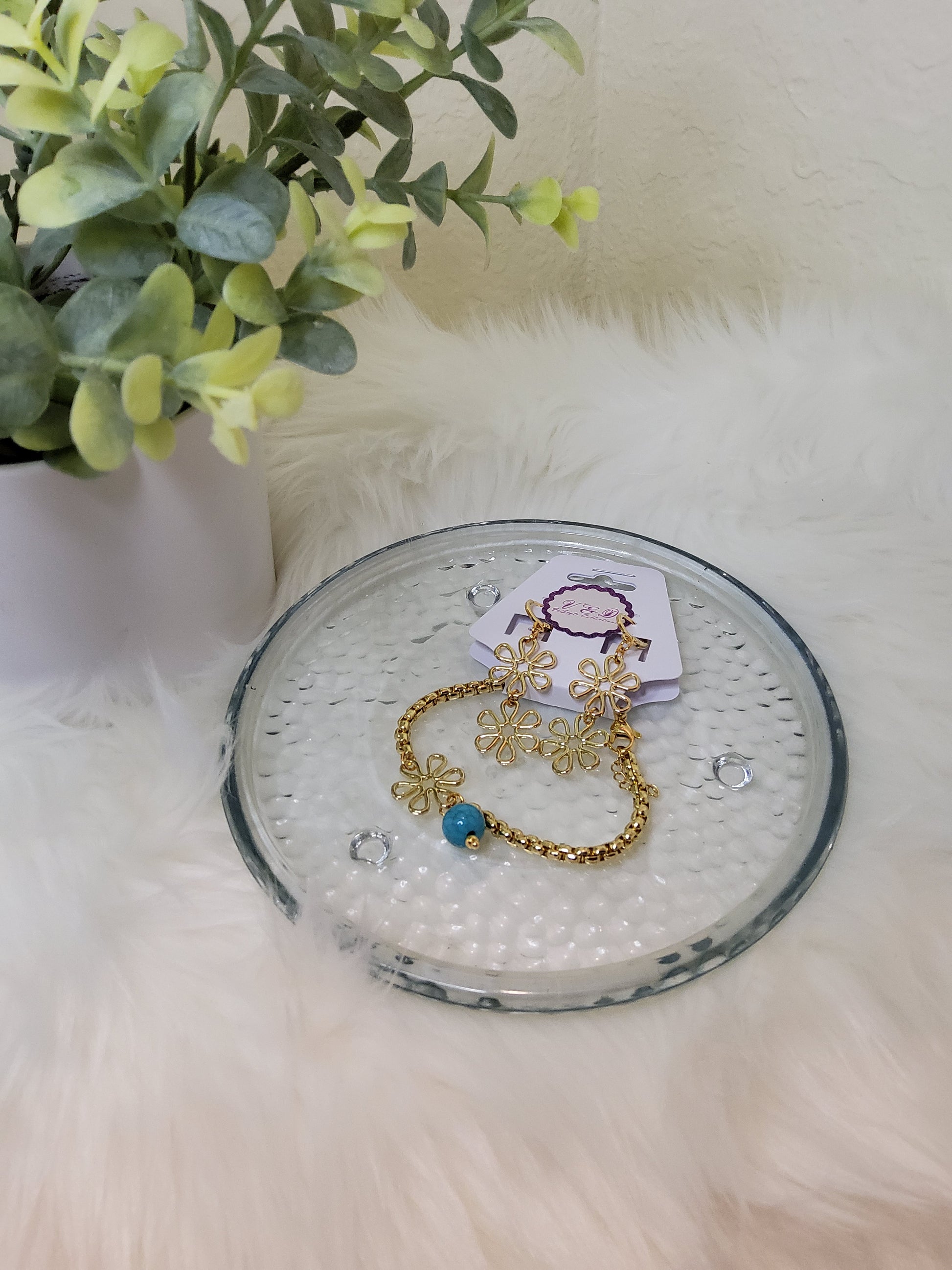 material: gold plated bracelet and earrings.