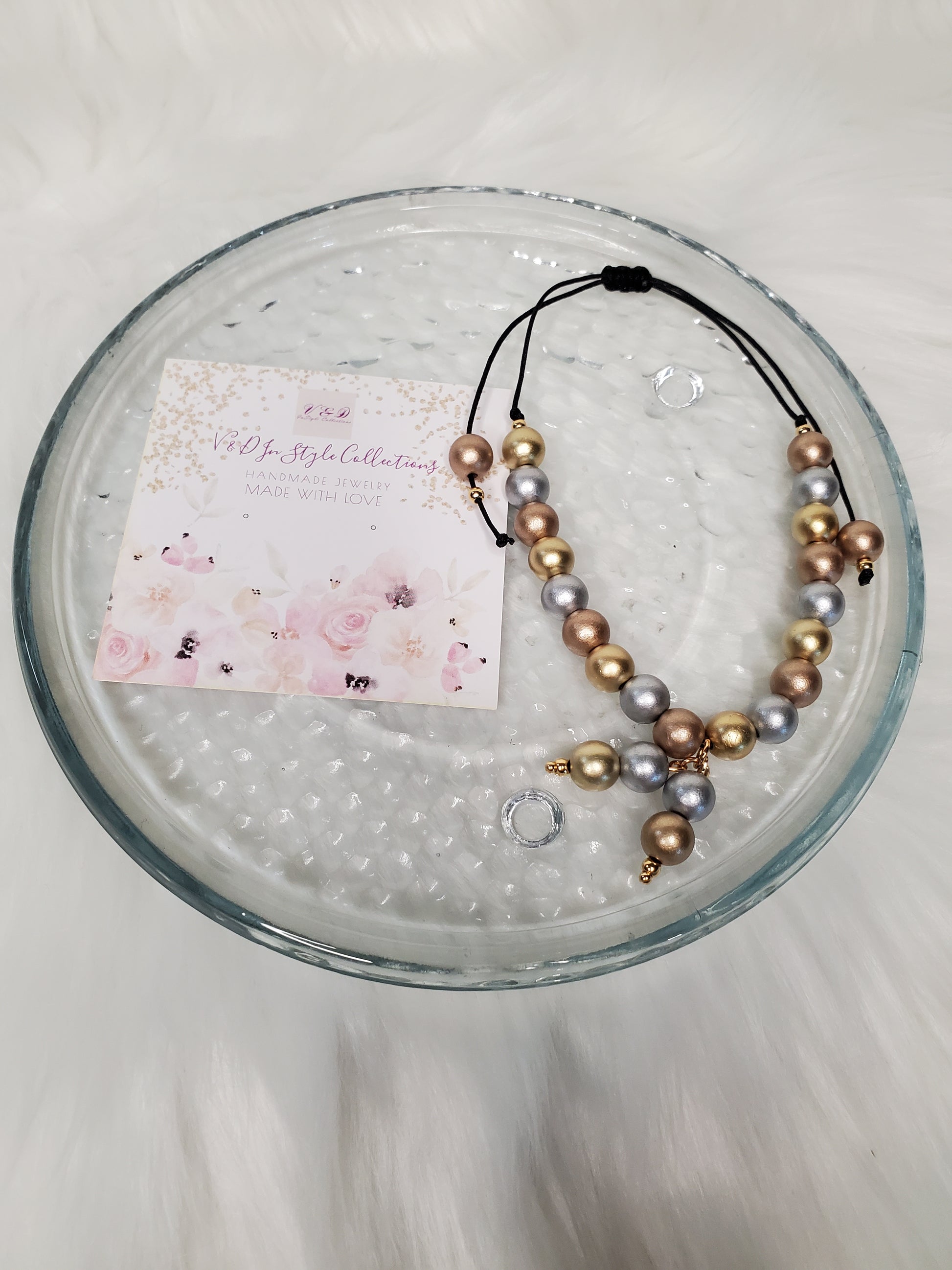 material: 18k gold plated heart-nylon-cord-acrylic-beads.