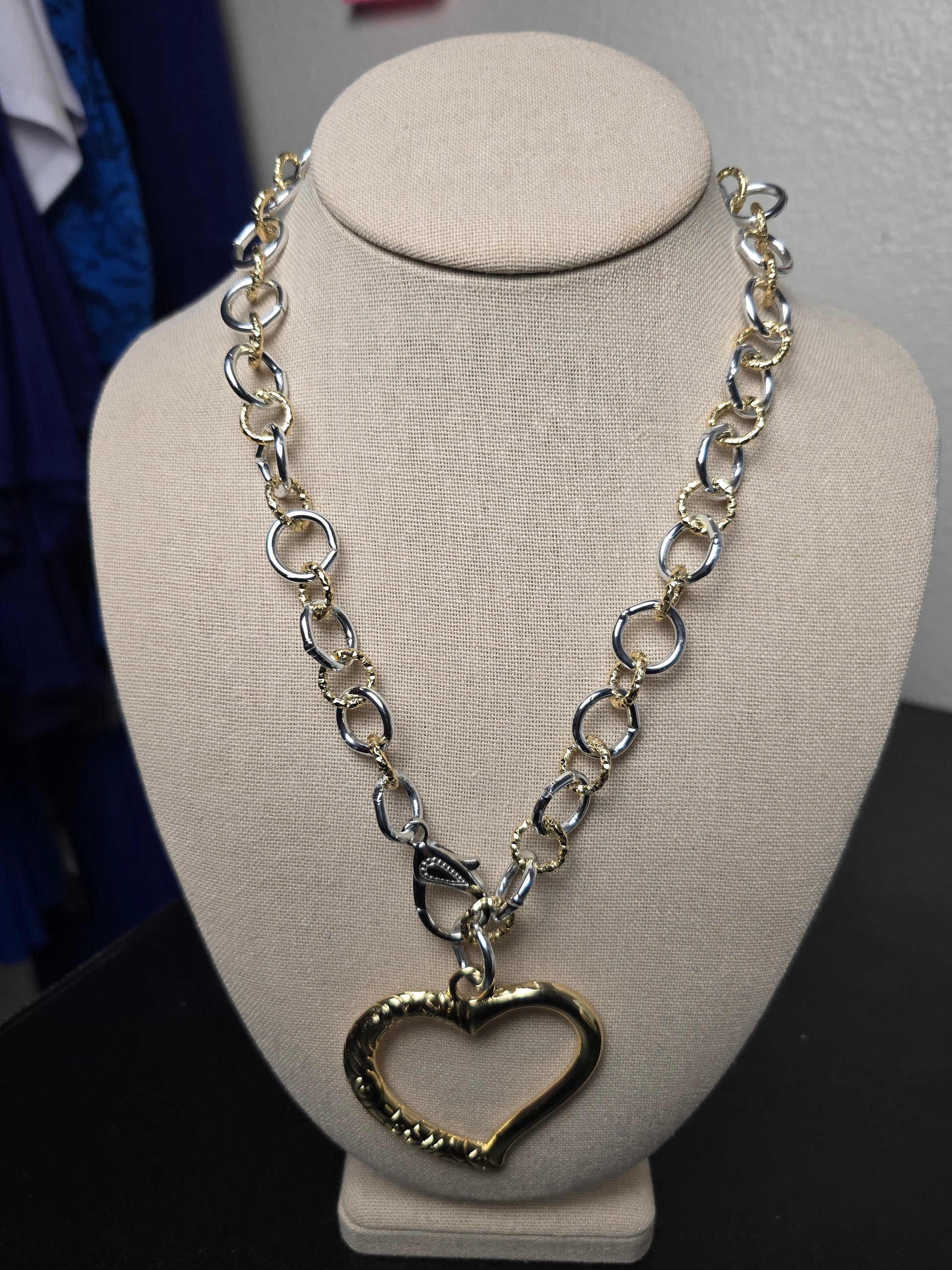 Style: This silver and gold-tone necklace and bracelet set features a beautiful engraved heart pendant — perfect to wear every day or on special occasions.