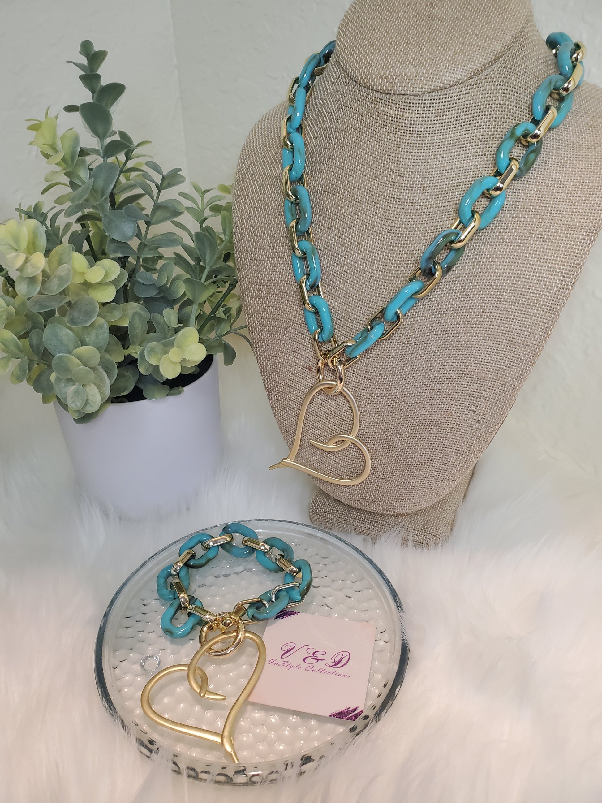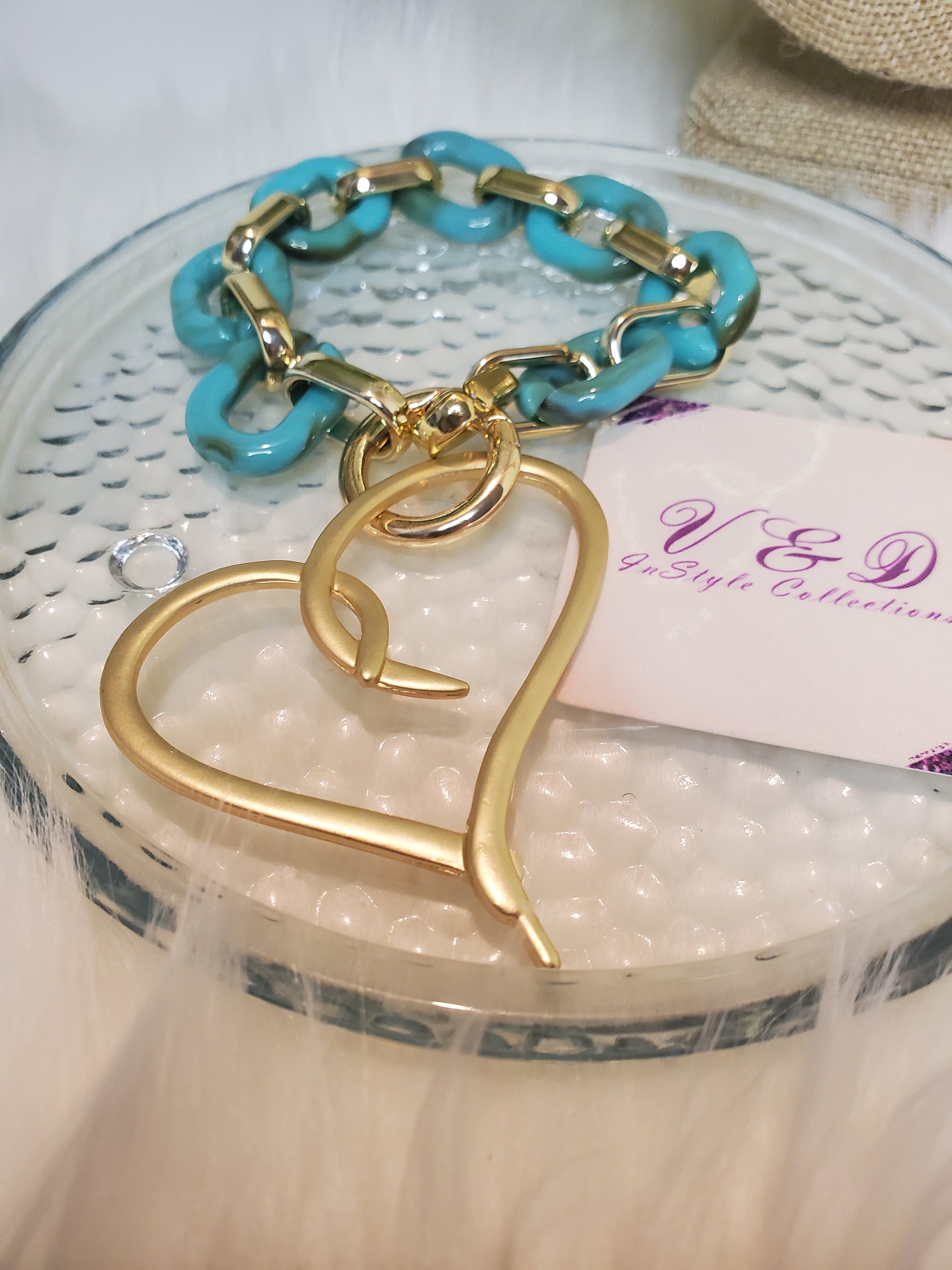 Material: acrylic links and gold plated heart.